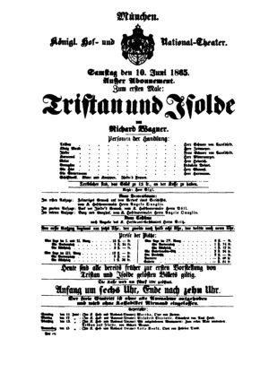 Афиша премьерного спектакля «Тристан и Изольда» в Мюнхенском театре. 10 июня 1865 г.