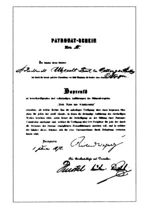 Благодаря распространению таких акций номиналом 300 талеров стало возможным строительство Фестшпильхауса в Байройте. 1 февраля 1882 г.