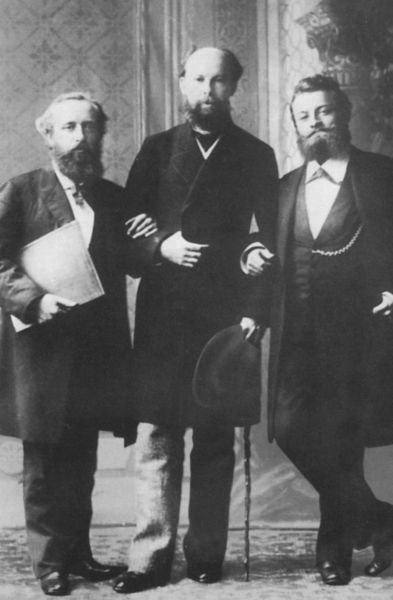 «Отцы Парсифаля». Слева направо: дирижер Герман Леви, художник Павел Васильевич Жуковский и технический директор Байройтского фестиваля Фридрих Георг Генрих Брандт