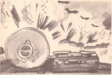 Радиостанция размещалась в крытой машине. Одна за другой вспыхивали сигнальные зелёные лампочки. Вздрагивали тонкие, как волосок, стрелки приборов. В серых металлических шкафах начинало что-то гудеть, щёлкать. Треск и шорох раздавались в наушниках. Один раз разрешили надеть наушники и Сорокину-младшему. Услышал он тонкий писк морзянки, услышал далёкую-далёкую музыку, услышал голоса, перебивающие друг друга. Словно взглянул он в волшебную подзорную трубу и увидел всё, что делалось далеко вокруг, увидел то, что секунду назад было невидимым.