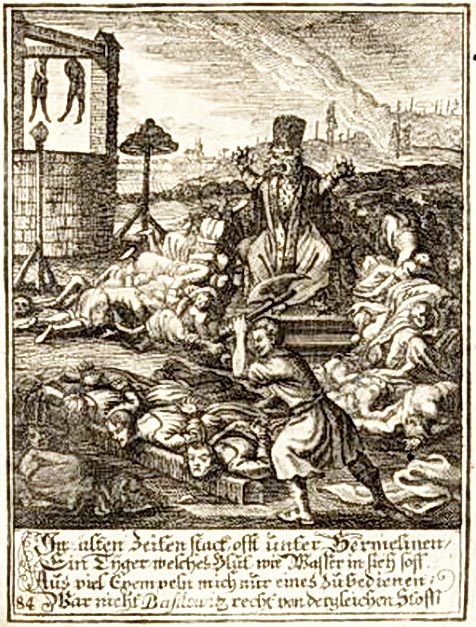 Казни Ивана Грозного. Гравюра из немецкой книги «Разговоры в царстве мертвых». 1725 г.