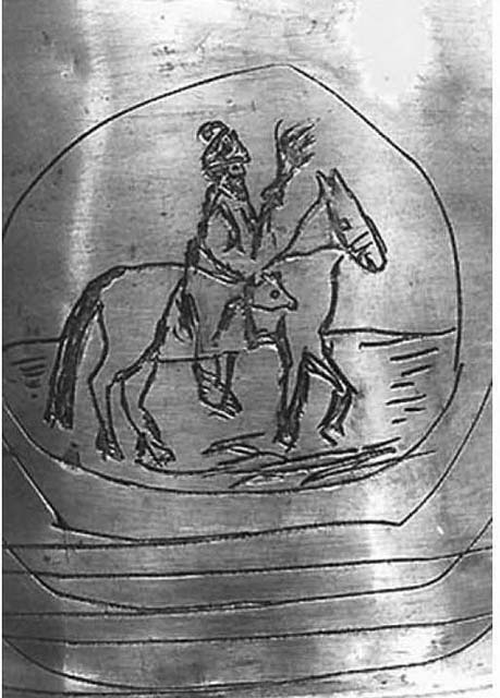 Изображение опричника на поддоне подсвечника из Александровской слободы. XVII в.