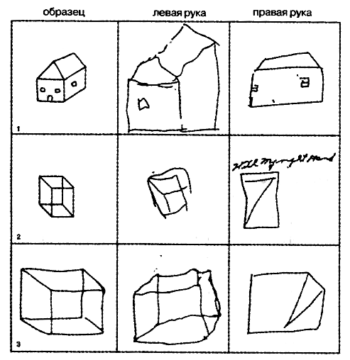 Рис. 2. Рисунки пациентов с расщепленным мозгом (по: «The Split Brain in Man», by Michael S. Gazzaniga).