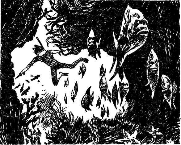 …На своей вахте я рано утром встречаю солнце и вечером провожаю его на покой. Пурш очень любил эти моменты. Устроившись на машинном телеграфе, жмуря глаза и тихонечко напевая про себя, он терпеливо ждал, когда солнце окунется в океан. Распухая на глазах и тускнея, солнце медленно сползало к океану. Казалось, вот сейчас его пылающий край коснется воды и к небу с ревом и свистом взметнутся белые столбы кипящего пара. Взглянув на меня, Пурш многозначительно щурил глаза, как бы желая сказать: «А все же это здорово, правда? Сколько раз мы уже видели все это, а все равно здорово!» Потом он мыл лапой свою круглую физиономию и устраивался в углу рубки вздремнуть. Там он и дожидался окончания моей вахты. А потом мы шли с ним на корму. Так было приятно сидеть на скамейке, подставляя лицо свежему ночному ветерку, и, вспоминая зеленые поля и леса родной суши, любоваться ночным океаном. Ночь в тропиках — тоже прекрасное зрелище. Ритмично рокочет двигатель судна, и траулер, слегка раскачиваясь на зыби, неторопливо бежит по океану, а вокруг него в воде вспыхивают, колеблются и раскачиваются ярко-голубые огни. Это мелкие морские организмы — ночесветки — загораются вот таким голубым светом, пугаясь траулера. А под кормой пожар! Голубое пламя бушует в воде, и полоса его, кажется, тянется до самого горизонта… А вот какие-то серебряные иглы прошили воду. Сотни, тысячи раскаленных добела игл. Это косячок рыб спешит куда-то. Порывшись в овощном шкафчике, я достаю из него подгнившую картофелину и кидаю за борт. Коснувшись воды, она расплескивает серебряные брызги и, сама вдруг превратившись в серебряный слиток, начинает медленно погружаться в воду. Черное, все усыпанное крупными, подрагивающими от лютого, космического холода звездами небо как бы раскачивается над нашими головами. Вот все звезды и созвездия покатились в одну сторону… Остановились, вновь покатились, но теперь в другую сторону. Красиво!.. Оп, сорвалась одна и, чиркнув крутой дугой, упала. Проследив за ней взглядом, Пурш прислушался. Может, он думал, что звезды, как и летучие рыбы, время от времени падают на палубы траулеров?.. Нет. Все тихо. Вздохнув, котенок стал разглядывать луну. — Ты еще маленький котенок, и откуда тебе знать, что на суше, ну там, где мы живем, месяц совсем не такой, — говорю я ему, погладив по лобастой головенке. — Видишь, тут он плывет, как лодочка, а дома висит, словно зацепился верхним рожком за гвоздь, вбитый в небо. Однако не пора ли нам спать? Пурш неохотно поднимается и идет за мной. Подхватив котенка на руки, я спускаюсь по трапу вниз, в каюту, и еще на руках Пурш слегка хрипловатым, ломающимся, как у мальчишки, голосом заводит новую песню. Текли дни один за другим, все больше и больше черных крестиков появилось в самодельном календаре, укрепленном на переборке моей каюты. По существующим в море традициям моторист Федя Долгов сделал Пуршу раздвижной медный ошейник, на котором было выбито имя кота и название судна. К тому же кольцо имело и весьма важное значение: медь предохраняет кота от каких-то «летучих токов», которые обязательно присутствуют на каждом судне и губительно влияют на котов и кошек. Пурш не возражал против ярко сияющего кольца-ошейника и быстро к нему привык. Труднее было привыкнуть к жаре, да не ладились отношения с судовой поварихой, толстой и неповоротливой Анн