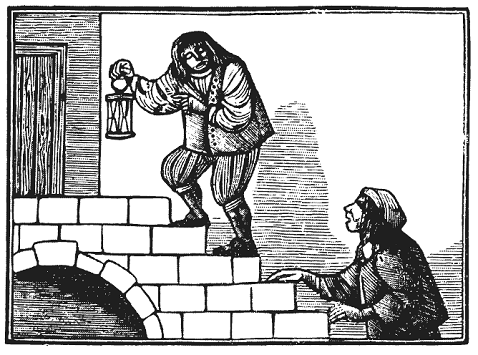 Увидев, что никто нам не отворяет, мы легли все втроем около двери и спали до тех пор, пока утром дом вновь не отперли, а затем тайком проскользнули в него, поднялись по лестнице в комнату барышень моих теток, так что никто ни их, ни меня не заметил. Наверху барышни мои тетки разделись и надели ночные рубашки, дабы никто не догадался, что прошлой ночью они «прогулялись по свежему воздуху». После этого они велели мне тихонько вновь сойти по лестнице, постучать в двери госпожи моей матушки и убедиться, признает ли она меня еще.