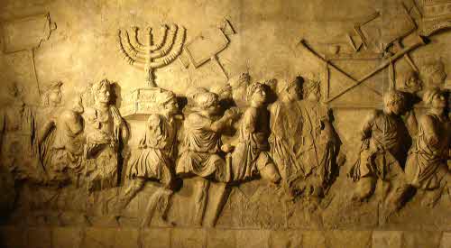 Деталь триумфальной арки Тита с изображением части сокровищ Иерусалимского храма.