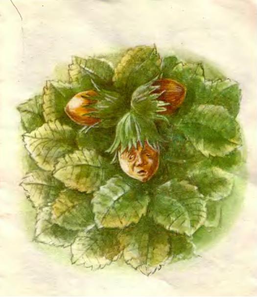 Кочеток залез на орешню орехи рвать, а курочке велел на земле подбирать.