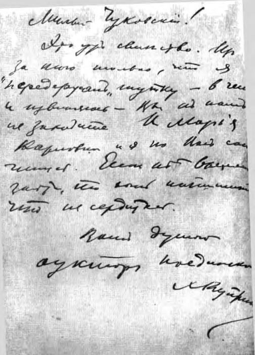 «…Не могу себе представить, — писала она мне из того же Локарно, — какое я имею к ней (к книге. — К. Ч.) отношение, что за книга и об чем меня спрашивают. Вам представить легко, как я далека от вопросов издательства и как я изумлена таким странным явлением…