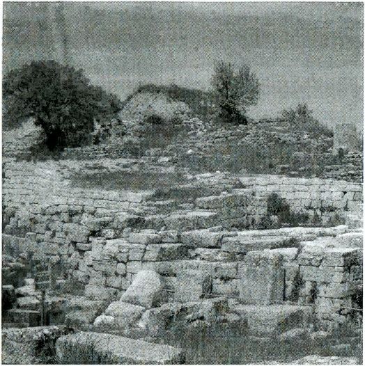 На этой фотографии, сделанной в Олимпии, видна мегалитическая структура камней