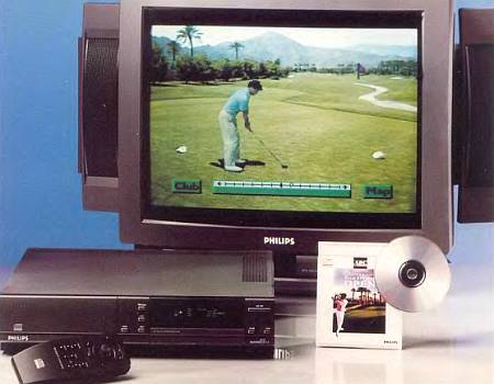 Мультимедиа-системы CD-I больше похожи на видеомагнитофоны, чем на обычные компьютеры. На экране телевизора воспроизводится курс игры в гольф, записанный на интерактивном компакт-диске фирмы «Филипс».