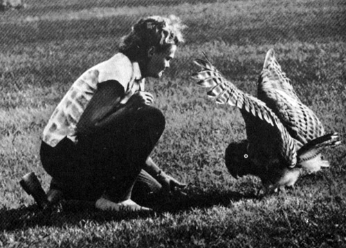 Кения находилась под угрозой вторжения итальянских войск, оккупировавших Эфиопию. Их наступления ждали в любой момент, и поэтому в стране были созданы, в основном из фермеров, отряды обороны. Однажды утром, когда я дома рисовала редкий экземпляр белого дельфиниума, который мне принесла Мюриель, открылась дверь, и в комнату в сопровождении эскорта вошла женщина-полицейский. Она предложила мне взять с собой самые необходимые вещи, сообщив, что я буду содержаться под арестом на протяжении всей войны. Меня и Питера это известие ошеломило. Нам и в голову никогда не приходило, что мое австрийское происхождение может вызвать какие-то подозрения, поскольку всем было известно, как я ненавидела фашизм. Мы пытались объяснить, что, видимо, произошла ошибка, но все было безрезультатно. В ответ на мою просьбу разрешить мне закончить рисунок, над которым я работала, мне сказали, что я могу взять цветок в монастырь, где я и другие подозреваемые лица будут находиться до создания постоянного лагеря. Уложив вещи и взяв под мышку Пиппина, я отправилась за женщиной-полицейским в монастырь. Там я увидела женщин многих национальностей, в том числе и нескольких англичанок. Каждая говорила на своем языке. Мое появление с белым дельфиниумом и одной руке и с собакой в другой вызвало некоторое удивление. Меня спросили, как это мне разрешили взять с собой Пиппина. В ответ я сказала, что это мой друг. Затем я устроилась в уголке и продолжала рисовать. Сосредоточившись на изящной голубой тычинке и хрупких кружевных лепестках, я ушла в тот мир, где едва ли кто-нибудь из людей мог меня обидеть. На следующий день нас всех вывезли поездом и плато и разместили на ферме, расположенной на высоте 2400 метров. Условия жизни здесь были самым примитивными. Все мы испытывали чувство глубокой подавленности, и это, пожалуй, единственное, что было у нас общего. Я обрадовалась, когда мне разрешили делать наброски цветов, растущих вокруг лагеря. В спешке перед отъездом я забыла взять миску, из которой кормила Пиппина, и, поскольку свободной посуды здесь не было, вырезала для него небольшую плошку из полена. Но что я могла положить в нее? Одна порция, выдаваемая мне на двоих, никак не могла удовлетворить аппетита Пиппина. К счастью, он уже успел понравиться некоторым из заключенных, и они бросали ему кусочки под стол. Каждое утро нас выстраивали и заставляли выполнять физические упражнения. Когда Пиппин впервые увидел, как мы прыгаем, он, казалось, был сбит с толку, но постепенно сам начал подражать нам: если мы прыгали, прыгал и он, а когда мы бегали по кругу, то и он бегал за нами. Глядя на него, усмехалась даже наша суровая надзирательница. Питер делал все возможное, чтобы выяснить причины моего ареста, и вот что он узнал. Оказывается, представитель отдела уголовного розыска заходил к моим друзьям Джекс-Блейкам и расспрашивал о моих знакомых. В разговоре они простодушно упоминали, что в нашем доме иногда встречали людей, говоривших на немецком языке. В действительности это были не немцы, а наши друзья — швейцарцы, говорившие на немецком языке, но именно из-за этого недоразумения меня и арестовали. Узнав о том, что произошло, Джекс-Блейки пошли к губернатору и потребовали немедленно освободить меня. Он дал согласие, и, когда неделю спустя я вернулась домой, я подарила Мюриель свой рисунок б