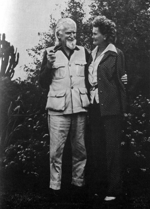 В 1944 году Джордж смог взять небольшой отпуск, и мы решили поехать в Конго. Руководство национальных парков Кении дало нам рекомендательное письмо своим коллегам в Управлении национальных парков Бельгийского Конго, в котором просили последних оказать нам содействие в восхождении на действующие вулканы. Тогда там было семь таких вулканов, извержения которых происходили через каждые семь лет. В 1944 году была очередь вулкана Ньирагонго, находящегося недалеко от озера Киву. Мы избрали путь, который когда-то я проделала месте с Салли Атсат, и наконец добрались до подножия потухшего вулкана Мухавура. Мы знали, что этот вулкан был одним из мест обитания горных горилл, и, надеясь увидеть их, наняли проводника, с тем чтобы по склонам, покрытым густыми лесами, подняться на вершину. Нам надо было преодолеть высоту почти в 1000 метров, и, чем выше мы поднимались, тем все круче и круче становился подъем, а местами приходилось карабкаться, как по крутой лестнице. Мы находили следы горилл, но они, видимо почуяв наше приближение, скрывались. Час за часом мы пробирались вверх. Наконец растительность начала редеть, и перед нами открылась широкая панорама местности, раскинувшейся внизу. Небо было затянуто облаками, и проводник настойчиво торопил нас идти дальше, пока еще туман не преградил окончательно нам путь. Уже начал моросить мелкий дождь, и это было для меня настоящей пыткой, ибо здесь росло много новых растений, которые мне хотелось бы получше рассмотреть. Мы только успели достичь вершины вулкана и увидеть в глубине кратера озеро, как спустился густой туман, и нам пришлось быстро возвращаться назад, чтобы не заблудиться. Спуск оказался еще тяжелее, чем подъем. Ноги у меня дрожали, и каждый шаг давался с огромным трудом. Вернувшись в лагерь, я попросила нашего проводника подняться на следующий день с нами на один из двух других вулканов. Он отрицательно покачал головой и, улыбаясь, сказал, что лучше было бы немного подождать. Как он был прав, стало понятно на следующее утро: мы не могли сделать и шагу, а боль во всем теле ощущалась даже при поездке в машине. Однако мы скоро почувствовали себя достаточно сносно, чтобы посетить ватутси, племя гигантов. Приблизившись к их поселению, мы увидели нескольких здоровых на вид мужчин, восседавших с зонтиками в руках на носилках, которые несли несколько человек. На наши расспросы нам ответили, что эти люди принадлежат к знати и они никогда не ходят пешком. Затем мы миновали несколько выбеленных круглых хижин, украшенных красивыми орнаментами, которые были выполнены красной охрой и темно-серой краской. Мы заметили, что у многих местных жителей в руках были весьма изящные самодельные корзины. Миновав еще ряд хижин, но уже более причудливой формы, мы наконец пришли к дворцу местного короля! У нас было рекомендательное письмо от кенийских властей, и на следующий день мы были представлены королю. Король Рудахигва был настолько высоким человеком, что я должна была запрокидывать голову, чтобы взглянуть ему в глаза. В его красивом приемном зале мы беседовали об истории народа ватутси, говорили о его знаменитом крупном рогатом скоте длиннорогой породы. Этот скот не только никогда не доили, но никогда не забивали на мясо. К нему, видимо, относятся так же, как относятся к священным коровам в Индии. Король свободно говорил 
