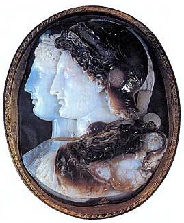 Изображения царя Птолемея II и его жены Арсинои вырезаны на полудрагоценном камне сардониксе. Эту так называемую камею Гонзага, выполненную в III в. до н. э. неизвестным мастером из Александрии, сейчас можно увидеть в петербургском Эрмитаже.