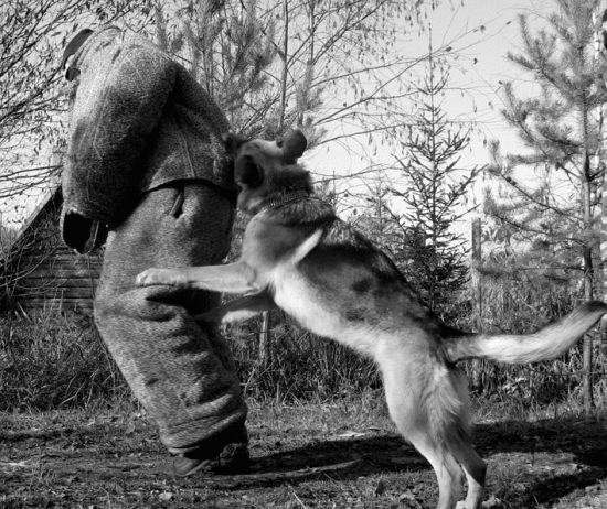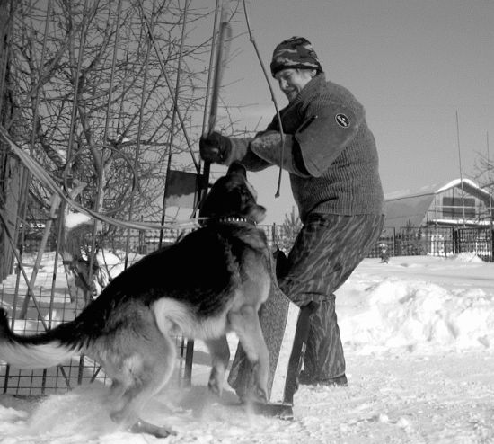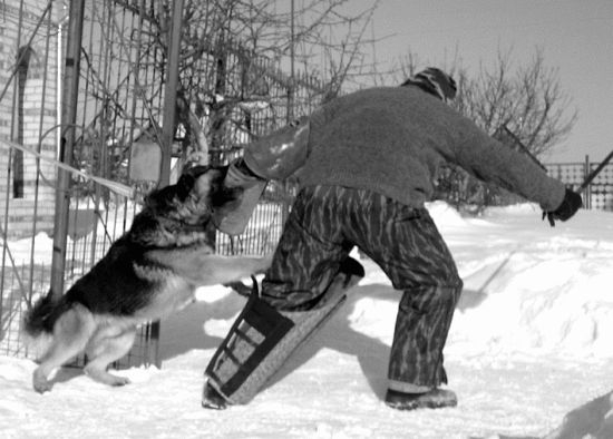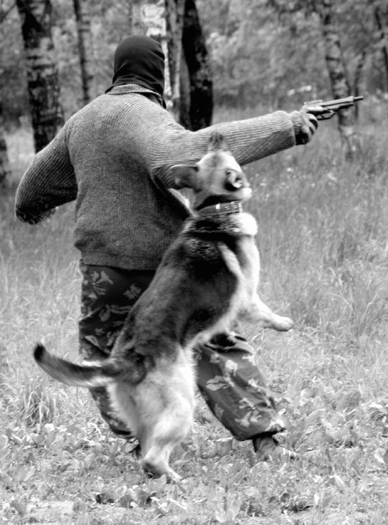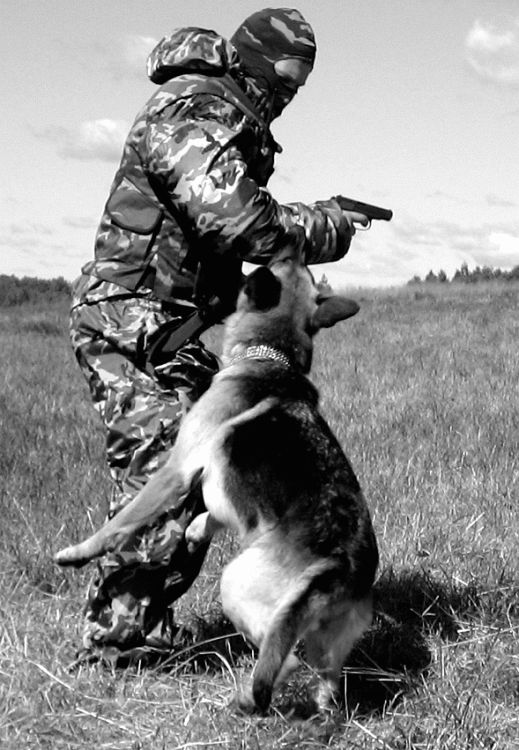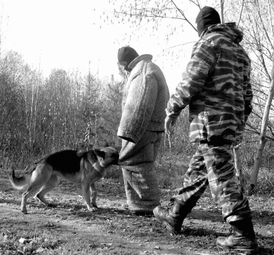 ПОЛИЦЕЙСКОЕ разведение. В последнее время наметилась тенденция разделения рабочего разведения на СПОРТИВНОЕ и ПОЛИЦЕЙСКОЕ. В спорте не нужны агрессивные особи, тогда как на службе в армии и правоохранительных органах наличие хорошо обученной агрессивной собаки является огромным плюсом при решении специальных задач. Предпочтение в разведении отдается именно тем экземплярам, которые способны давать потомство с сохранением необходимых качеств для будущей службы. Генетические задатки существенно облегчают дальнейшее обучение выбранному профилю. Если вы решили завести собаку, определитесь, для каких целей вы ее приобретаете, после этого делайте выбор в сторону того или иного разведения. Чтобы потом, спустя несколько лет, не разводить руками и не говорить: я хотел совершенно другого! Лучше всего о требованиях, а также специфике разведения полицейских и спортивных собак высказалась Екатерина Вилкова, много времени и сил уделяющая проблемам породы «немецкая овчарка». Процитирую некоторые выдержки из ее интернетовских статей: «Давайте зададимся вопросом: а что, собственно говоря, есть рабочие качества собаки? Итак, пользовательские собаки (Gebrauchshunde) во всем мире делятся на: 1) служебных (полицейских) собак; 2) спортивных собак; 3) выполняющих чисто пользовательские функции, такие как проводники слепых, пастушьи, спасатели и т. п. Первые — это полиция и таможня: поиск наркотиков и взрывчатых веществ — пограничники и тому подобные. Вторые — это ШХ, ИПО (Краткое обозначение западных нормативов для сдачи собаками, включающих в себя след, послушание, защиту — примечание Д. Фатина), различные ринги и другие виды спорта (именно о спорте идет речь, а не о сдаче норматива!!!), обязательно включающие в себя послушание и защиту. Для служебных собак, в зависимости от рода службы, основными качествами является либо хороший нюх, либо способность противостоять человеку в борьбе, сочетающаяся с безукоризненным послушанием. Как самую близкую и знакомую всем работу возьмем полицейский патруль. Я знаю очень много немецких полицейских, и мы неоднократно беседовали о том, какие собаки им нужны для работы. Они сказали следующее: полицейские предпочитают использовать разных собак для разных работ. Таким образом, на патрулирование улиц выходит одна, на задержание террориста, засевшего в здании, — другая, на преследование и розыск — третья. Существует специальный норматив для полицейских собак, который называется ДХ (Diensthund). Он обязателен к сдаче для ВСЕХ полицейских собак, состоящих на государственной службе. Послушание и след в полиции и в спорте очень похожи. След практически такой же, на послушании тоже есть движение рядом, прыжки и апортировка, усадка и укладка, а также выдержка. Защита отличается тем, что собака работает на двух фигурантов: одного в рукаве, другого в защитном костюме, как для мондьоринга (спортивные соревнования для защитных собак — Д. Ф. ). Есть облаивание в укрытии, конвой, посыл на фигуранта на облаивание (вместо лобовой атаки, так как очень большое расстояние до «злоумышленника»), есть и неожиданное нападение. Откуда же берут полицейские своих собак? Щенков государство покупает крайне редко. Это объясняется нежеланием рисковать: ведь угадать, что из них вырастет, невозможно, а кормить собаку год, чтобы затем узнать, что она непр