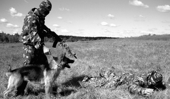 Задача заключительного этапа дрессировки: добиться от собаки безошибочного нахождения по заданному запаху и вытягивания из шеренги, состоящей из десяти человек, за одежду искомого человека.