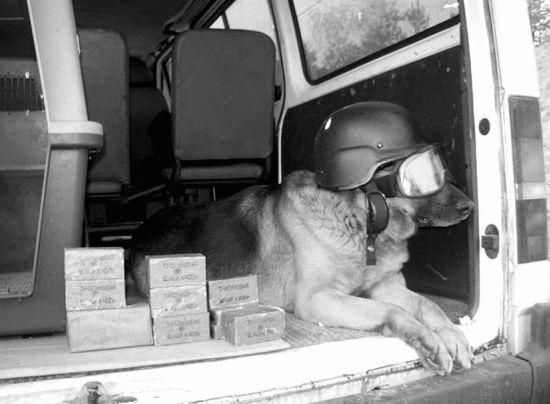 Каждое усложнение вводится отдельно ото всех остальных и, только будучи хорошо освоенным собакой, может быть использовано в комплексе с остальными. Вторая задача считается решенной, если собака, при наличии всех трех вышеперечисленных усложнений, безошибочно находит как минимум в 45 предложенных ей макетах всех спрятавшихся в них помощников, при этом на пустые макеты не реагирует. Уместно напомнить, что в войсках для определения уровня подготовки дрессировщиков и степени надрессированности закрепленных за ними собак по приему «обыск транспорта» существует специальный норматив. Вот его содержание. На площадке для подготовки собак к обыску транспортных средств дрессировщику предлагается при помощи собаки решить 10 вводных. Каждая вводная включает в себя поочередный обыск трех макетов с целью обнаружения в них укрывшихся помощников. При этом все люки макетов плотно закрыты крышками. Верхние настилы завалены 30-сантиметровым слоем имитационных палочек, поверх которых хаотично набросаны деревянные ящики. Под макетами и возле них установлены открытые емкости с резко пахнущими веществами. В определенный момент на дне кузова одного из макетов прячется помощник в дрессировочном костюме. Из 30 макетов, предлагаемых для обыска, не менее 27 должны быть пустыми. На решение одной вводной отводится: для специалиста кинологической службы 3 класса — 3 мин., 2 класса — 2,5 мин., 1 класса — 2 мин., мастера — 1,5 мин.