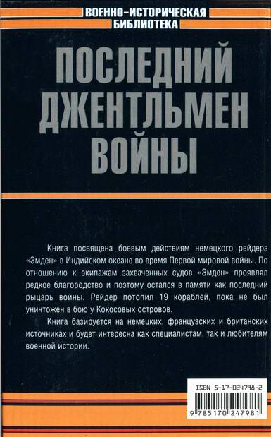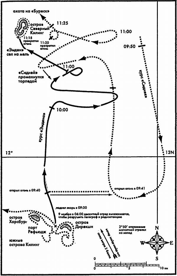 В наш век высоких технологий почти невероятная история приключений и морских путешествий небольшого немецкого крейсера под названием «Эмден» может быть одним из последних примеров успешной деятельности одиночного боевого надводного корабля. Как последняя глава в блестящей, романтической, насчитывающий много столетий истории традиционного морского боя, она определенно вызовет чувство ностальгии. В рассказах о военно-морских сражениях во время первой мировой войны отдельные судьбы являются второстепенными. Превалируют более сложные вопросы, такие, как общая стратегия и политические предпосылки, анализ теории Тирпица[1], способы ведения боевых действий с участием подводных лодок, операции линейного флота[2] и экономическая борьба. Захваченные врасплох в начале войны, когда они находились в мировом океане летом 1914 года, несколько существовавших в то время немецких крейсеров быстро исчезли. Это была война, в которой участвовал молодой, неопытный немецкий военно-морской флот, против которого выступала не только могучая Великобритания, но также Франция, Россия и Япония. Стратегической задачей отдельных, базировавшихся за пределами Германии крейсеров было помешать врагу, заблокировать союзные силы и рассредоточить и децентрализовать морское могущество союзных сил, разрушить торговый флот, побудить к восстанию угнетаемое население колоний и, наконец, вступить в сражение с вражескими боевыми кораблями. Учитывая их размер, боеспособность и технические характеристики, крейсеры более чем справились с этой задачей. На протяжении многих месяцев они беспрерывно курсировали по всем мировым океанам и были шилом в боку врага. Несмотря на огромные сложности, они выполнили поставленные перед ними задачи, и с поразительными результатами. Экипаж «Эмдена» действовал совершенно автономно. Они были отрезаны от поддержки, их постоянно преследовали заботы о пополнении запасов, они смертельно уставали от бесконечных вахт; они находились в напряжении, так как приходилось заниматься кучей мелких дел, потому что даже маленькая ошибка могла представлять угрозу для скорости передвижения, готовности к сражению и вообще сохранению судна. Это была опасная и расшатывающая нервы война против врага, имеющего укрепленные базы, боевые корабли и надежное материально-техническое обеспечение; они сражались под постоянной угрозой катастрофы, с упорством, целеустремленностью и хитростью. История «Эмдена» — это история смелости, преданности и воли, которые он проявил перед лицом врага. Демонстрируя поразительные успехи и почти забытые чувства доблести и рыцарства, командир корабля и экипаж уважали права человека и международное право. Эта история о командире корабля, экипаже и судне, которые завоевали восхищение как друзей, так и врагов, рассказывается простым, холодным языком документов и свидетелей с обеих сторон. Любое драматическое отношение сделало бы ее менее достоверной. Было бы невозможно реконструировать те события без записей членов экипажа «Эмдена», которые рассказали о своем опыте, без послевоенных книгоиздателей и бережно сохраненных документов в нескольких архивах. Различные источники перечисляются в Библиографии. Я должен особо поблагодарить доктора Г. Сандхофера из Государственного Военного архива во Фрейбурге/Брейсга
