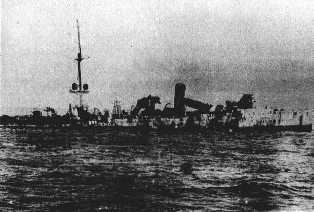 Застигнутый врасплох, русский крейсер «Жемчуг» был потоплен легким крейсером «Эмден» на рассвете 28 октября 1914 года.