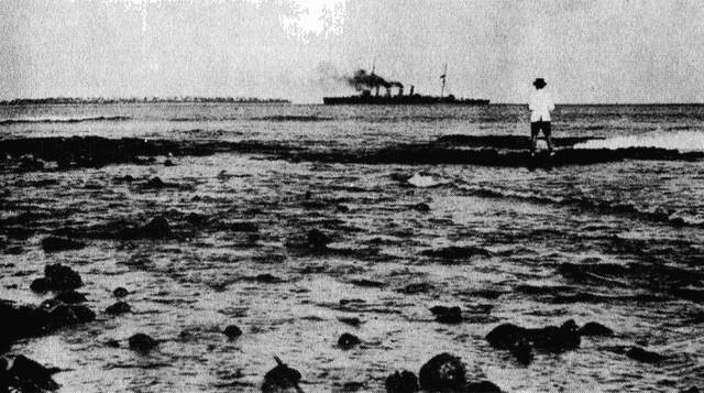 Прибой и погодные условия еще сильнее разрушили «Эмден», стоявший недалеко от Северного Килинга, как видно на этой фотографии начала 1930-х годов. То, что от него осталось, было разодрано японской судоподъемной компанией в 1950 году.