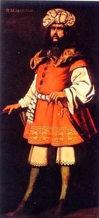 Вот так испанский художник XV в. Франсиско Сурбаран представлял себе легендарного Альманзора. Но это изображение, конечно, не достоверно. Во-первых, согласно всем свидетельствам, Альманзор был красив и строен. Во-вторых, он вряд ли носил чулки и камзол подобно испанским дворянам XV в.