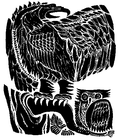 Роняет береза золотистую листву, золотые иглы теряет лиственница. Дуют злые ветры, падают холодные дожди. Лето ушло, осень пришла. Птицам время в теплые края лететь. Семь дней на опушке леса в стаи собирались, семь дней друг с другом перекликались: — Все ли тут? Тут ли все? Все иль нет? Только глухаря не слышно, глухаря не видно. Стукнул беркут своим горбатым клювом по сухой ветке, стукнул еще раз и приказал молодой кукушке позвать глухаря. Свистя крыльями, полетела кукушка в лесную чащобу. Глухарь, оказывается, здесь — на кедре сидит, орешки из шишек лущит. — Уважаемый глухарь, — сказала кукушка, — птицы в теплые края собрались. Уже семь суток вас дожидаются. — Ну-ну, всполошились! — проскрипел глухарь. — В теплые земли лететь не к спеху. Сколько здесь в лесу орехов, ягод… Неужто это все мышам и белкам оставить? Вернулась кукушка: — Глухарь орехи щелкает, лететь на юг, говорит он, не к спеху. Послал тогда беркут проворную трясогузку. Прилетела она к кедру, вокруг ствола десять раз обежала: — Скорее, глухарь, скорее! — Уж очень ты скорая. Перед дальней дорогой надо маленько подкрепиться. Трясогузка хвостиком потрясла, побегала-побегала вокруг кедра, да и улетела. — Великий беркут, глухарь перед дальней дорогой хочет подкрепиться, сил набрать. Разгневался беркут и повелел всем птицам немедля в теплые края лететь. А глухарь еще семь дней орехи из шишек выбирал, на восьмой вздохнул, клюв о перья почистил. — Ох, не хватает у меня сил все это съесть. Жалко такое добро покидать, а приходится… И, тяжело хлопая крыльями, полетел на лесную опушку. Но птиц здесь уже не видно, голосов их не слышно. «Что такое?» — глазам своим глухарь не верит: опустела поляна, даже вечнозеленые кедры оголились. Это птицы, когда глухаря ждали, всю хвою склевали; земля вокруг кедров от птичьего помета побелела. Горько заплакал, заскрипел глухарь: — Без меня, без меня птицы в теплые края улетели… Как теперь буду я здесь зимова-а-ать? От слез покраснели у глухаря его темные брови. С той поры и до наших дней дети, и внуки, и правнуки глухаря, эту историю вспоминая, горько плачут. И у всех глухарей брови, как рябина, красные.