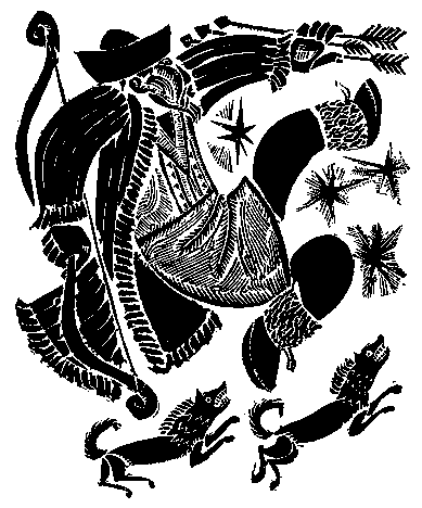 Летней ночью, на восточном краю неба, эта погоня хорошо видна: три маралухи, три собаки, две стрелы — одна белая, другая, в крови, красная, а позади старик-охотник Кудай-берген. Так и движутся они по небу, отдыха не зная, одним бессмертным, неразлучным созвездием Трех маралух[8].