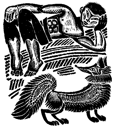 В стародавние времена жила на Алтае чудо-зверь Мааны. Была она, как кедр вековой, большая. По горам ходила, в долины спускалась — нигде похожего на себя зверя не нашла. И уже начала понемногу стареть: «Я умру, — думала Мааны, — и никто на Алтае меня не вспомянет, забудут все, что жила на земле большая Мааны. Хоть бы родился у меня кто-нибудь…» Мало ли, много ли времени прошло, и родился у Мааны сын — котенок. — Расти, расти, малыш! — запела Мааны. — Расти, расти. А котенок в ответ: — Мрр-мрр, ррасту, ррасту… И хоть петь-мурлыкать научился, но вырос он мало, так и остался мелким. Вторым родился барсук. Этот вырос крупнее кота, но далеко ему было до большой Мааны, и характером был он не в мать. Всегда угрюмый, он днем из дома не выходил, ночью по лесу тяжело ступал, головы не поднимая, звезд,луны не видя. Третья — росомаха — любила висеть на ветках деревьев. Однажды сорвалась с ветки, упала на лапы, и лапы у нее скривились. Четвертая — рысь — была хороша собой, но так пуглива, что даже на мать поднимала чуткие уши. А на кончиках ушей у нее торчали нарядные кисточки. Пятым родился ирбис-барс. Этот был светлоглаз и отважен. Охотился он высоко в горах, с камня на камень легко, будто птица, перелетал. Шестой — тигр — плавал не хуже Мааны, бегал быстрее барса и рыси. Подстерегая добычу, был нетороплив — мог от восхода солнца до заката лежать притаясь. Седьмой — лев — смотрел гордо, ходил высоко подняв свою большую голову. От его голоса содрогались деревья и рушились скалы. Был он самый могучий из семерых, но и этого сына Мааны-мать играючи на траву валила, забавляясь, к облакам подкидывала. — Ни один на меня не похож, — дивилась большая Мааны, — а все же это мои дети. Когда умру, будет кому обо мне поплакать, пока жива — есть кому меня пожалеть. Ласково на всех семерых поглядев, Мааны сказала: — Я хочу есть. Старший сын — кот, мурлыча песенку, головой о ноги матери потерся и мелкими шагами побежал на добычу. Три дня пропадал. На четвертый принес в зубах малую пташку. — Этого мне и на один глоток не хватит, — улыбнулась Мааны, — ты сам, дитя, подкрепись немного. Кот еще три дня птахой забавлялся, лишь на четвертый о еде вспомнил. — Слушай, сынок, — сказала Мааны, — с твоими повадками трудно будет тебе жить в диком лесу. Ступай к человеку. Только замолчала Мааны, а кота уже и не видно. Навсегда убежал он из дикого леса. — Я голодна, — сказала Мааны барсуку. Тот много не говорил, далеко не бегал. Вытащил из-под камня змею и принес матери. Разгневалась Мааны: — Ты от меня уйди! За то, что принес змею, сам кормись червями и змеями. Похрюкивая, роя землю носом, барсук, утра не дожидаясь, в глубь черного леса побежал. Там, на склоне холма, он вырыл просторную нору с восемью входами-выходами, высокую постель из сухих листьев взбил и стал жить в своем большом доме, никого к себе не приглашая, сам ни к кому в гости не наведываясь. — Я хочу есть, — сказала Мааны росомахе. Семь дней бродила по лесу кривоногая росомаха, на восьмой принесла матери кости того оленя, чье мясо сама съела. — Твоего, росомаха, угощенья ждать — с голоду умрешь, — сказала Мааны. — За то, что семь дней пропадала, пусть потомки твои по семь дней добычу выслеживают, пусть они никогда не наедаются досыта, пусть едят с голоду все, что придется… Росомаха обвила кривыми лапами ствол кедра, и с тех пор Мааны не видала ее. Четвер