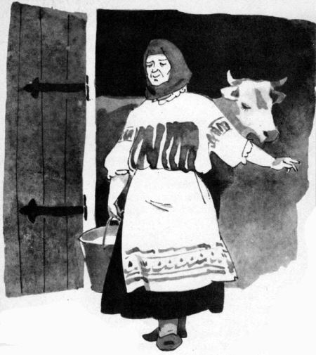А розовый бант, когда она перескочила через лужу, упал прямо в грязь. С тех пор Муца перестала ходить к Звёздочке в гости. Но Данка и Янка по-прежнему навещали Звёздочку и по-прежнему с ней дружили. И в это воскресенье они тоже побежали к маленькому домику с одним оконцем. Ещё издали они закричали: — Здравствуй, Звёздочка! Как живёшь, Звёздочка? Но что такое? Из домика выглянула не Звёздочка, а какой-то незнакомый телёнок. А на лбу у этого телёнка была не звёздочка, а самое обыкновенное белое пятнышко. Девочки бросились к бабушке. — А Звёздочка? Где наша Звёздочка? Бабушка как раз доила рыжую Ро́гану. Подойник у неё был полон молока. Бабушка сказала: — Звёздочка теперь такая большая, что ей стало тесно в прежнем домике. Теперь она живёт с остальными взрослыми телятами. От огорчения Данка чуть не заплакала. А бабушка сказала: — Сейчас я подою Рогану, и мы вместе сходим к Звёздочке. Поглядим, как ей живётся на новом месте.