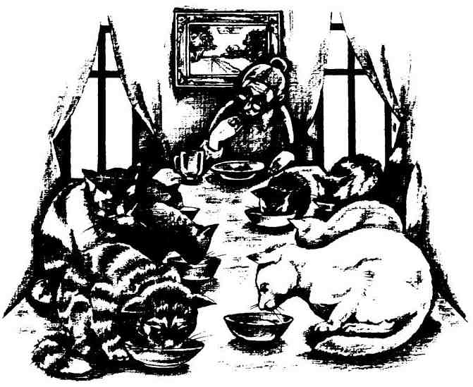 По ночам она устраивалась весьма уютно, особенно зимой, ибо все те кошки, которые этого хотели (а хотелось многим), спали у неё на постели, укрывая её собой, словно тёплым шерстяным покрывалом.