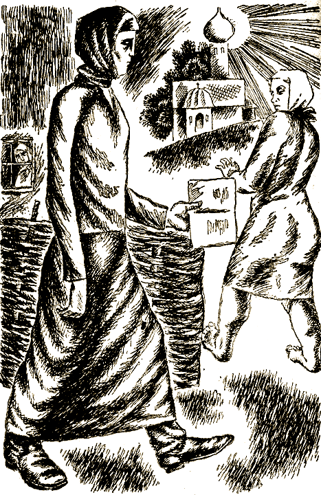 в которой рассказывается о молитве героя нашего повествования.Видно, церквушку не заняли в горячие тридцатые годы под овощехранилище потому, что была она ветхой и стояла на отшибе. Река здесь текла сонно; ее можно было свободно перейти вброд или переехать на телеге. В церкви, как иконы, висел полумрак. Пахло керосином. Народу было много — молодухи, пергаментные старушки. Мужчин, не считая меня, двое — солдат с усами и поп. Солдат стоял в темном углу, белела выцветшая гимнастерка, на ней поблескивала медаль «За отвагу». Он крестился, потом замирал, как по команде «смирно». Поп сипло что-то бубнил нараспев, его мучил кашель. Бабы падали на колени, били поклоны, били поклоны… Перед образами чадили керосиновые лампадки; от них-то и тянулся едкий специфический запах. Я поставил огарок домашней свечи перед изображением женщины с ребенком на руках. Не знаю, как точнее передать то чувство, которое я ощутил в полумраке деревянной церквушки перед изображением женщины с младенцем на руках. Я не думал о том, есть бог на самом деле или нет, я вдруг почувствовал, что горе не только у меня одного, что горе такое же у всех стоящих рядом на коленях женщин, горе у тысяч людей, у миллионов. У нас одно горе. И люди позвали выплакаться вместе с ними. — Боженька! Боженька!.. — зашептал я. Я не знал ни одной молитвы, поэтому стал выговаривать то, что было больно; и, дав выход боли, почувствовал, что наступает облегчение. Так выплакивал я в колени матери, когда смертельно обижали более взрослые мальчишки. Мать нежно гладила по голове, я затихал — и обида пропадала. — Боженька! Боженька!.. — шептал я. — Если ты есть на самом деле, то сделай, пожалуйста, очень прошу, чтоб мама осталась живой! Ну, зачем тебе она? Зачем ей умирать? Она хорошая, самая хорошая! Я буду послушным, буду послушным, буду самым послушным, буду делать все, что прикажешь. Хочешь, убей меня! Убей Рогдая, всех убей, только пусть мама останется! Ты слышишь меня, боженька? Правда, слышишь? Я шептал страшную молитву, и ее слова околдовывали. Я никогда не предполагал, что слова, которые говоришь сам себе, могут действовать сильнее, чем слова, сказанные другим человеком. Горе, тоска, отчаяние, безраздельное одиночество превратились в источник горькой сладости. Это было сладостное самоистязание. Окружающее растворилось в тумане, я забылся… Рядом женщины били поклоны, били поклоны… — Боженька! Боженька!.. Тетя Груня вытащила меня на улицу. Она набрала в ладони теплой речной воды и плеснула мне в лицо. — Сдурел, что ли? — закричала она. — Чего зенки вылупил? Право слово, городской. Иконы… Велика невидаль иконы! На деревяшке масляной краской намалевали и кланяются деревяшке. И молился неправильно, без пользы — свечу-то поставил богородице, а звал бога. Слезы распустил… Может, тебя собака кусала, так скажи, пойдем к фельдшеру, уколы в живот сделают. Кому поверил? Попу! Он прошлой зимой водки нажрался, в сугробе заснул. Легкие-то и простудил. Нет, тебе не в церковь — в комнату смеха ходить. На ярмарках бывал? Видел или нет зеркала там разные смешные? Она вычитывала долго и убежденно. И много лет спустя, вспоминая поход на богомолье, я удивлялся практицизму русской женщины: в церковь она ходила не потому, что верила в доброту бога, ходила на всякий случай — вдруг поможет, хуже, чем есть, не будет, но надеялась она лишь на самое с