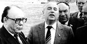 С секретарем ЦК, членом Политбюро М.Горбачевым возле Ниагарского водопада. 1983 г.