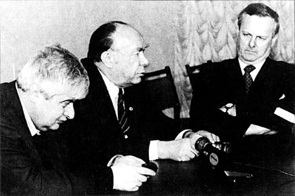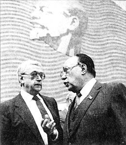 С "архитекторами перестройки" Г.Поповым и А.Собчаком на праздновании 75-летия Февральской революции в Ленинграде.
