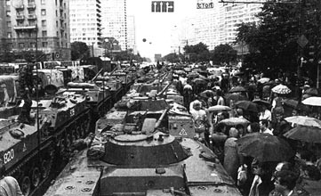 Я долго не мог решить, писать или не писать главу о времени Ельцина. Не оставляло ощущение, что предстоят какие-то масштабные перемены, что и случилось. К лучшему или худшему — пока что в тумане. Мнения моих друзей тоже были разными. Даже советовали поставить после заголовка знак вопроса на всю страницу. В этом, между прочим, есть смысл, ибо пробежавшие галопом события плохо поддаются анализу на историческом уровне. Кроме того, в России многое началось, но ничто не закончилось, все движется, припадая то на правую, то на левую ногу. Отсюда и болотистая вязкость политических событий, анархичность действий, и катастрофичность сознания. Одним словом, страна зыбучих песков. Иными словами, годы начиная с 1991-го — это годы неиспользованных, а вернее — в известной мере потерянных возможностей. Итак, бурное лето 1991 года. Быстро нарастало напряжение в военно-партийной элите, равно как и в демократическом лагере. Те и другие рвались к власти. В чиновничьих аппаратах Москвы вслух заговорили о какой-то надвигающейся беде, но какой? Во второй половине июля зашел ко мне перед отпуском профессор Наумов — консультант по делам реабилитации. Я рассказал ему о своих опасениях относительно возможности государственного переворота и о предупреждениях в связи с этим, направленных мною официально Горбачеву. Поговорили о том о сем. Я спросил его: "А кто, по-твоему, станет во главе возможной авантюры?" Наумов пожал плечами. Когда он уходил, я бросил вслед: "Думаю, что Шенин". Я действительно считал, что именно Шенин возглавит какой-то реваншистский демарш: как-никак секретарь ЦК, амбициозен, крут, с мозгами, вареными на сталинском бульоне. В августе 1991 года меня исключают из партии. 16 августа собирается политсовет Движения демократических реформ. Единодушно констатируем, что в стране создалась предгрозовая обстановка, пахнущая переворотом. Договорились встретиться через неделю и подготовить на эту тему обращение к народу. Опоздали. О начавшемся мятеже я узнал рано утром 19 августа. Позвонил Олег Калугин и сказал, чтобы я включил радио. — С минуты на минуту будет объявлено о том, что в стране вводится чрезвычайное положение. Фактически речь идет о военном перевороте. Бывает же так. Я чувствовал, что должно случиться нечто подобное, но когда это стало реальностью, верить не хотелось. Спросил Олега: — А ты трезв? — Трезвее трезвого. Рассказал жене. Начал успокаивать ее, но оказалось, что успокаивать надо меня. Нина Ивановна собрала нервы в кулак и говорила только о том, что надо делать. Такой спокойной я ее никогда не видел. Девятилетний внук Сергей, почувствовавший детским сердечком, что происходит что-то неладное, начал привязывать к ручкам входных дверей разные склянки-банки. — Как только кто-нибудь начнет дверь открывать, мы услышим, — объяснял он свой "хитрющий" замысел. Прибежала дочь Наташа с мужем Борисом. Созвонился с сыном. Вскоре все они ушли к Белому дому. Пока было ясно только одно — начиналась новая полоса в жизни страны и в моей — тоже. Партийно-военная номенклатура пошла на мятеж. В Москву введены войска. На телевидении — Чайковский, "Лебединое озеро". Где Ельцин и что с ним? Только слухи, в том числе и панические. К дому пришли журналисты — иностранные и советские. Один из них — старый знакомый Лев Шерстенников — зашел в квартиру и сказал, что с обеих сто