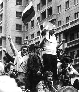 Несут на руках! Митинг на Лубянке после путча. 21 августа 1991г