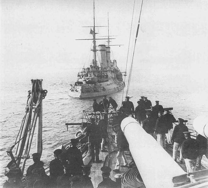 Волнения возвращения на родину, гордость удачей завершенного плавания, радость от успехов завершившихся экзаменов, воодушевление от производстве в офицеры, "наполеоновские планы" предстоящей службы и сколько еще других чувств, надежд и ожиданий царили на кораблях в апрельские дни 1907 г. Кают-компания "Цесаревича", как и остальных кораблей, гудела от неслыханного собрания офицеров. Помимо штатного состава на кораблях оказались 35 мичманов, 11 подпоручиков (механиков) и два подпоручика судостроителя (оба — А.И. Маслов 1884–1968 и А.Н. Щеглов 1886–1954) стали видными конструкторами боевых кораблей). Эти 20-23-летние молодые люди составляли надежду флота, залог его возрождения и процветания. Они достойно поддержат вековую славу андреевского флага и уже не позволят совершиться ни Порт-Артуру, ни Циндао, ни Цусиме, ни мятежам "Потемкина" и "Памяти Азова". Вот-вот должна была отойти в вечность цензовая система, понемногу сдавала свои позиции рутина бюрократических порядков. Казалось, что флот, как и Россия, придет к тому благоустройству, с каким отряд встретился за границей. Хотелось закрыть глаза на все еще не завершенное сооружение Любавского порта с его почему-то мелеющим аванпортом. Здесь как и во время пребывания эскадры Рожественского, кораблям опять приходилось своими боками "углублять" мелководную стоянку. Недоразумением считали и мятеж кораблей черноморского флота в мае 1907 г. Думать о мятежах и их причинах почему-то не хотелось. Ведь перед флотом стояло столько неотложных задач восстановления и реформирования. И далеко не все еще уроки войны были осознаны и учтены. Во всем преобладал чисто "технарский", как бы мы сегодня сказали, подход, а заботу об устранении то и дело проявлявшей себя розни между матросами и офицерами, столь же глубокой, как и между рабочими и фабрикантами, предпочитали оставлять на откуп жандармам и полиции. Усиливался лишь надзор за командами, да в помощь офицерам пытались поднять авторитет кондукторов и сверхсрочнослужащих. Но это не удалось. Слишком мало было желающих остаться на сверхсрочной службе, так как "на воле" матрос, имеющий техническую специальность, мог заработать в несколько раз больше. "Экономия" продолжала вредить флоту. Начавшееся в 1905 г. внутреннее брожение на флоте полностью заглушить не удавалось. Впереди были новые потрясения. Но пока не вступили в строй новые корабли, на которые придут еще более "распропагандированные" в гражданской жизни матросы, гардемаринский отряд сохранял видимость ничем не колеблемой стабильности. Благополучно провели ремонт после плавания, и уже 30 сентября начали из Либавы новый поход с новой сменой гардемаринов. Состав отряда был прежний. Столь же насыщенной была и программа обучения. "Цесаревич" под командованием Н.С. Маньковского оставался флагманским кораблем, державшим контр-адмиральский флаг нового "командующего отдельным отрядом судов, назначенных для плавания с корабельными гардемаринами". А.А. Эбергард, всю войну состоявший в штабе наместника, а потому столь виновный в гибели флота в Порт-Артуре, в силу особого, остающегося неразгаданным до настоящего времени расположения императора продолжал делать головокружительную карьеру. После недолгого командования в 1905–1906 гг. броненосцами "Император Александр II" на Балтике и "Пантелеймон" на Черном море, он в 1907 г.,