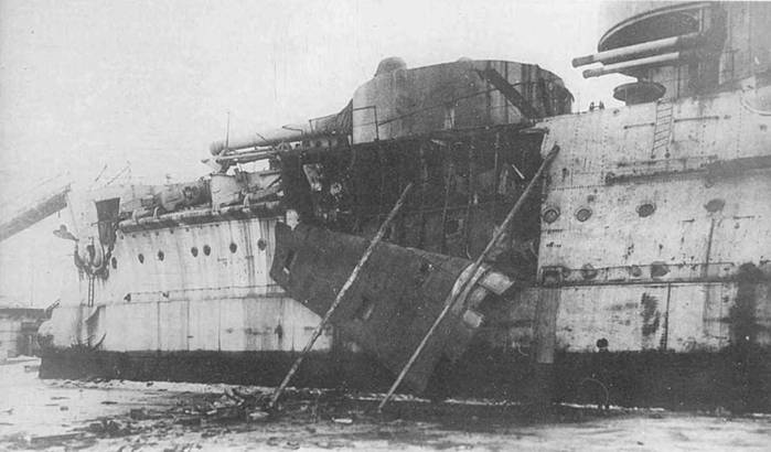 “Цесаревич”-”Гражданин” в дни Февральской революции (вверху) и после обстрела с Красной горки. 1921 г.
