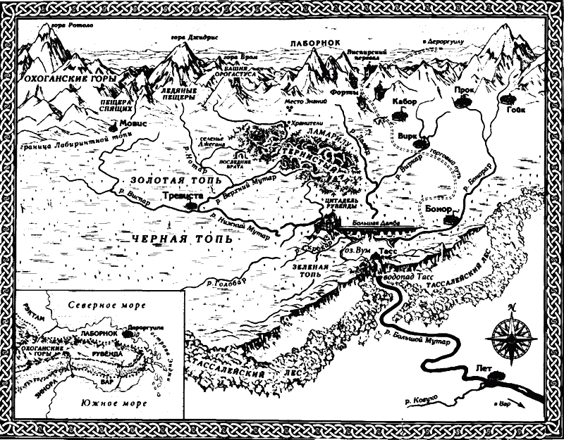 Их было трое, — дочерей Черного Триллиума. Достигнув расцвета своей женственности, они должны были стать: Харамис — колдуньей, Кадия — воительницей, а Анигель — королевой. Они появились на свет все вместе, что само по себе было странным и неслыханным, и в миг их рождения Великая Волшебница Бина (та, что, по слухам, была полновластной Хранительницей всей страны) приветствовала их и дала им имена. Бина предсказала, что они будут надеждой и спасительницами своего народа. Каждую она одарила амулетом из янтаря с. крошечным бутоном легендарного Черного Триллиума внутри, знаком их королевского рода и страны. Страна Рувенда уже много поколений служила приютом человечеству, но все еще таила много неразгаданного. Значительную часть ее занимали болота с островами твердой земли между ними. На многих островах сохранялись развалины, иные такие обширные, что вполне могли быть руинами больших городов. Король жил в Цитадели, тоже наследии былых времен, но хорошо сохранившейся. К востоку люди осушили болота и превратили плодородную землю в поля и пастбища. Рувенда служила перевалочным пунктом для торговцев лесом с юга, в котором крайне нуждались их северные соседи в Лаборноке. Другие товары поступали из болотистой местности: целебные травы, пряности и ребристые раковины водяных моллюсков — одни цветные и сверкающие, точно драгоценные камни, другие такие твердые, что из них изготовляли панцири воинов. Самыми редкостными были вещи (иные настолько странные, что нельзя было понять, для чего они делались), которые находили в древних развалинах. Разыскивали их оддлинги, обитатели болот, которых рувендиане встретили, появившись в этих краях, и с которыми прекрасно уживались, поскольку не имели друг к другу территориальных претензий. Было два племени оддлингов: ниссомы, более дружественные (некоторые даже служили в королевской Цитадели), и уйзгу, робкие дикари, обитавшие дальше на западе в неисследованной части болот. Свои товары уйзгу приносили ниссомам, а уж те предлагали их гильдиям торговцев. Торг обычно происходил в большом разрушенном городе, который люди называли Тревиста, куда туземцам было легко добираться по реке. В болотах жило еще одно племя, считавшее своей собственностью северо-западные пределы, но его все чурались. Топители — так называли их оддлинги, а ученые мужи употребляли слово «скритек». Это было кровожадное племя ящеров, они пытали и убивали людей без причины. Иногда они нападали на осушенные земли, чаще выискивали жертвы среди оддлингов, и никто никогда не сказал ничего хорошего про их хищный род. В детские годы трех принцесс в Рувенде царил мир, если не считать таких вот налетов. Люди и не подозревали, что на севере уже собираются грозовые тучи. Король Лаборнока был стар и правил очень давно, пережив многих своих современников. Его наследник, принц Волтрик, устал ждать. Много времени он проводил за морем, где научился иным обычаям и нашел себе союзников, включая великого колдуна Орогастуса. Вернувшись на родину, принц привез с собой и этого чародея. И когда Волтрик наконец надел королевскую корону, Орогастус стал его первым советником. Волтрик возжелал подчинить Рувенду — не из-за ее болот, его манили торговля лесом и несметные сокровища, по слухам, спрятанные в разрушенных городах. И едва утвердившись на престоле, он нанес у