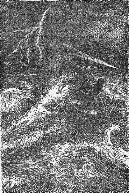«Эге-ге! Да на море настоящий шторм! Подумал он. - брызги долетают даже сюда: Ну, не хотел бы он в такое время быть на воде!».