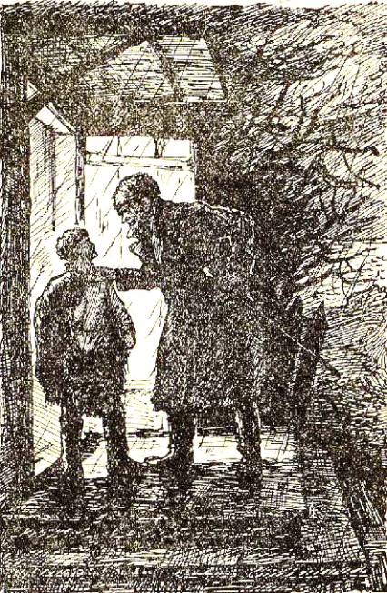 Растерявшись от неожиданной встречи, Олег отскочил и тесно прижался спиной к забору, уступая дорогу Кажану. Согнувшись и подняв воротник пальто, Кажан быстро прошел мимо. Вдали затих дробный стук его палки.