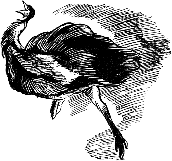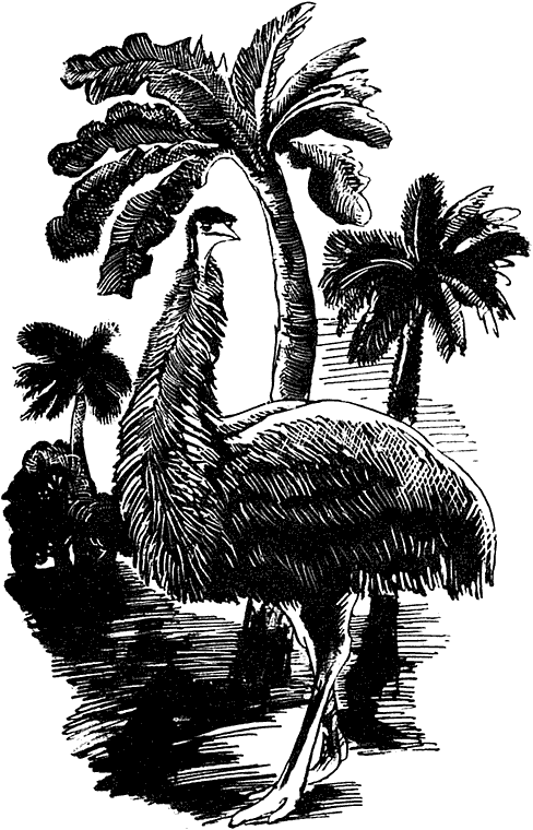 Ну что ж, опять назад. Он зевнул, обнажив большой ярко-розовый рот. В соседней клетке послышалось движение. Там находился его двоюродный брат — африканский страус. Он высоко взмахивал крыльями. Карроинги не мог так: ведь у него не было крыльев или, вернее, были, но такие маленькие, что со стороны они были лишь едва заметны. Конечно, он не мог ими по-настоящему размахивать. Но зато у него на каждой ступне было по три пальца против двух у его африканского сородича. Да ещё пятка, которой у того и вовсе не было.