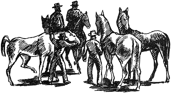 К сожалению, Карроинги недолго пришлось гордиться, что он — отец такого большого числа прекрасных яиц. В течение трёх лет белые поселенцы не трогали эму, за исключением нескольких раз, когда они были просто вынуждены гнаться за птицами верхом, так как эму слишком близко подбирались к их посевам и домашнему скоту. Но вот один из поселенцев сделал как-то открытие, очень печальное для эму. Птицы часто останавливались и смотрели на сухощавых, будто поседевших от солнца людей, объезжавших на своих тощих лошадях равнину. Как хороши эти животные, называемые лошадьми, думали эму, наблюдая ритмичную игру их мускулов под золотисто-коричневой или же серой блестящей кожей. Во всяком случае, бегали они почти так же быстро, как эму. Вот поэтому-то, хотя эму и были очень любопытны, они старались держаться на значительном расстоянии от всадников.