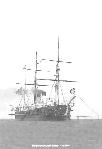 Броненосный фрегат «Князь Пожарский» ставший одним из первых российских океанских крейсеров В мирное время подавляющее большинство перечисленных кораблей базировалось на Кронштадт, а миноносок — на Гребной порт в Петербурге. С началом же боевых действий Балтийский флот мог опереться также на Свеаборг и Ревель, правда, располагавшие ограниченными ресурсами. Все они находились на берегах Финского залива, обеспечивая контроль над его водами, но оставляя практически без защиты все курляндское и лифлядское побережье. Вдобавок залив надолго замерзал, что вынуждало разоружать корабли ежегодно с октября по апрель. Для крейсерских операций в океанах предназначались главным образом четыре броненосных и полуброненосных фрегата, а также 16 клиперов, из которых шесть были недавно введены в строй и два достраивались. Для сравнения заметим, что в английском флоте к 1880 году насчитывалось около 50 мореходных броненосцев и 150 неброненосных кораблей, а в германском, до 1871 года существовавшем едва ли не символически, свыше 20 броненосцев и 30 неброненосных кораблей, преимущественно новой постройки[65].
