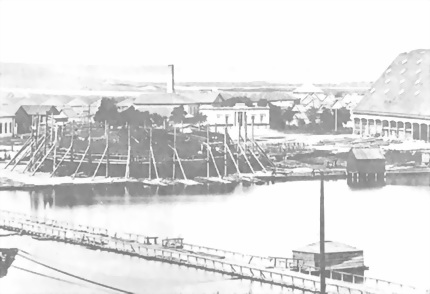 Вид на верфь Галерного островка, переданную в аренду Франко-Русскому заводу