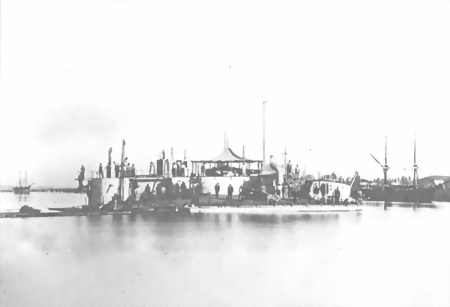 Поповка «Новгород» — круглый броненосец, построенный по проекту А.А. Попова Тогда же Константин Николаевич с высочайшего разрешения сформировал под своим председательством Особую комиссию для обсуждения вопроса о типе будущих броненосцев. В заседаниях комиссии, состоявшихся 22 и 24 февраля 1877 года в Мраморном дворце, принял участие и цесаревич Александр Александрович. Собственно, создавалась комиссия лишь для того, чтобы придать коллегиальный характер решению о строительстве новых «поповок». Развивая конструкцию круглого судна, вице-адмирал А.А. Попов предложил значительно увеличить его водоизмещение, чтобы в варианте, предназначенном для Черного моря, оно могло нести 24-дюймовую (609,6-мм) броню и четыре 16-дюймовых (406-мм) орудия, имело скорость 12 уз и минимальную осадку, позволявшую входить в устье Днепра, а для Балтики — броню 36 дюймов (914-мм), шесть 16-дюймовых или четыре 20-дюймовых (508-мм) чугунных гладкоствольных орудия[41]. Обращаясь к членам комиссии, Константин Николаевич попытался внушить им мысль о необходимости строить именно такие броненосцы, как, якобы, значительно превосходящие лучшие иностранные образцы и позволяющие надолго сохранить боевую мощь флота. Но наследник, а с ним вице-адмиралы К.Н. Посьет и Г.И. Бутаков, высказались против увлечения немореходными круглыми судами, и великому князю пришлось образовать субкомиссию под председательством С.С. Лесовского для детального рассмотрения проекта А.А. Попова. Собравшись на заседание 25 февраля, субкомиссия постановила передать проект в кораблестроительное отделение Морского технического комитета (МТК). По приказанию Константина Николаевича, в качестве минимальных требований к будущему броненосцу принимались: 24-дюймовая броня, четыре 16-дюймовых орудия, скорость хода 12 уз и осадка 20–22 фута (6,1–6,7 м), что было совместимо лишь в проекте «поповки»[42]. 22 апреля, после необходимой подготовки, А.А. Попов отослал председателю кораблестроительного отделения, генерал-лейтенанту И.С. Дмитриеву теоретические чертежи и другую документацию. Однако к этому моменту Россия уже 10 дней находилась в состоянии войны с Турцией. Судостроительные планы пришлось отложить до лучших времен. Боевые действия на море во время Русско-турецкой войны 1877–1878 годов в очередной раз подтвердили старую истину — флот должен быть сбалансирован по классам и численности кораблей. Несмотря на героизм экипажей, ни импровизированные крейсера из числа судов Русского общества пароходства и торговли (РОПиТ), ни минные катера, за исключением сражавшихся на Дунае, не смогли существенно повлиять на обстановку[43]. Лишь довольно низкий уровень подготовки личного состава помешал турецкому флоту утвердить свое господство на военном театре. На протяжении всей войны российское командование испытывало потребность в мореходных броненосцах, и особенно остро с февраля 1878 года, после того, как в Мраморное море вошла британская Средиземноморская эскадра вице-адмирала Д. Хорнби, прикрывшая фланги оборонявших Константинополь османских войск. Ее появление изменило соотношение сил на фронте, а возникшая в связи с этим угроза разрыва с Англией, отрицательно сказалась на решениях штаба Действующей армии, что позволило туркам выиграть время для укрепления Чаталджинских позиций и переброски подкреплений из Румелии и Мало