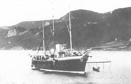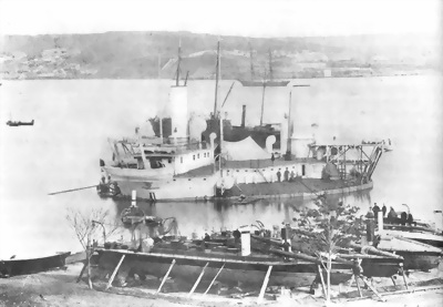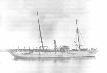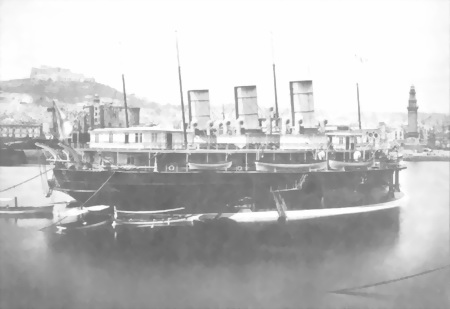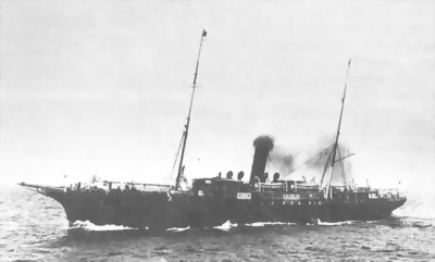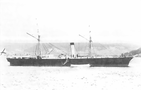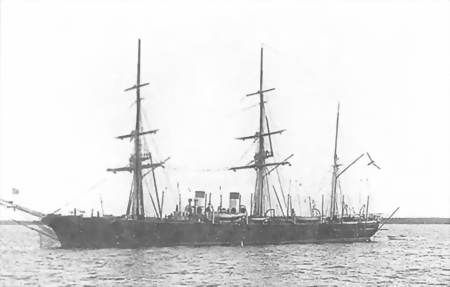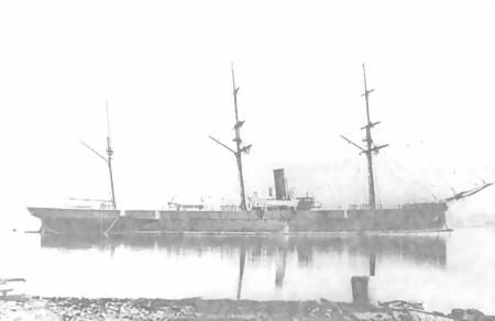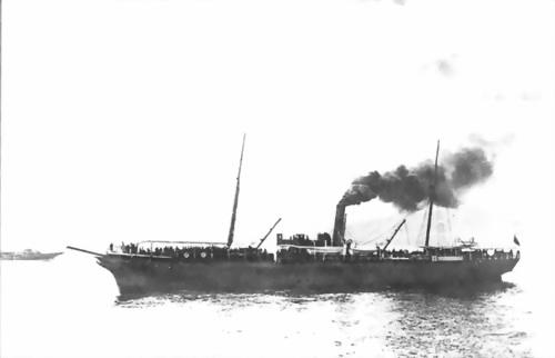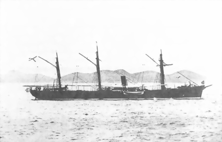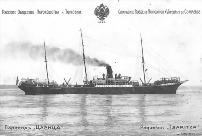 Пароход Добровольного флота «Россия», доставивший военные грузы во Владивосток во время Кульджинского кризиса Пароходы Р. Сломана прибыли в Кронштадт во второй половине июня, а через две недели отправились вслед за «Россией». Однако все грузы и на них не поместились, поэтому министерству 30 июля пришлось заключить контракт с купцом В.М. Русановым, который предоставил в распоряжение Морского ведомства два зафрахтованных им датских парохода, неплохо заработав на этой посреднической операции[94]. В августе пароходы вышли по назначению, а к середине ноября доставили во Владивосток прицелы для эскадры, 1000 т кардифского угля и другое имущество. Тем временем в Одессе начальник учебного минного отряда Черноморского флота, капитан 2 ранга И.М. Диков пытался погрузить на пароход Добровольно флота «Москва» четыре миноноски с запасом мин Уайтхеда, орудия и боеприпасы для Тихоокеанской эскадры. Предполагалось вооружить пароход, но по размышлении пушки спрятали в трюм и оставили судно под коммерческим флагом, избежав таким образом дипломатических трений при проходе черноморских проливов. Во время погрузки миноносок выяснилось, что «Москва» способна принять только две из них. Поэтому оставшиеся две, при содействии инспектора Добровольного флота капитан-лейтенанта М.В. Вахтина и местного агента (представителя) общества Д.Ф. Акимова, подняли на палубу парохода «Петербург», который 24 июля покинул Одессу. Через месяц, 30 августа, ушла в Тихий океан и «Москва», на которой отправились офицеры и команды миноносок[95].