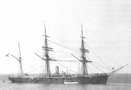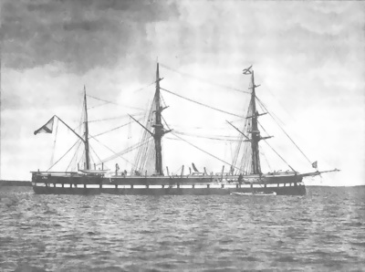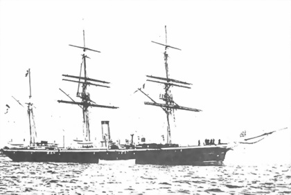 Клипер «Разбойник» На основании резолюции управляющего, ГМШ 20 декабря телеграфировал А.Е. Кроуну приказание идти в Чемульпо на клипере «Опричник» для наблюдения за событиями. Однако адмирал выполнить его не сумел. Ему помешала принятая в конце месяца депеша А.П. Давыдова, считавшего, что прежде всего следует дождаться возвращения из Кореи А.Н. Шпейера[511]. А в начале января 1885 года он получил предписание послать названный корабль в Шанхай, для защиты французских подданных, интересы которых в Китае, после разрыва между Пекином и Парижем, представляли российские дипломаты. Отправив клипер по назначению, А.Е. Кроун 20 января вышел вслед за ним из Иокогамы на «Разбойнике». Обстановка в Шанхае была тревожной: местные власти опасались беспорядков, тем более возможных, что над французским кварталом продолжали развеваться национальные флаги, а консул Планси сохранял судебно-полицейскую власть над китайским населением. Российский посланник в Пекине, С.И. Попов, указал на неуместность такого положения, а консул Ю. Рединг при поддержке А.Е. Кроуна договорился с французами о замене их флага российским и формальной передаче ему юрисдикции Планси. Чтобы не подавать повода к слухам о каком-либо давлении с его стороны, адмирал, еще до смены флагов, 3 февраля ушел на «Опричнике» в Сингапур, встречать фрегат «Владимир Мономах», а в Шанхае некоторое время оставался «Разбойник»[512]. Надо сказать, что «Владимир Мономах», шедший на смену «Минину», направлявшиеся в Тихий океан клиперы «Джигит», «Крейсер», и корабли Средиземноморского отряда летом — осенью 1884 года впервые получили комплекты из пяти секретных карт с объяснительной запиской, изготовленные Гидрографическим департаментом в 20 экземплярах, по образцу составленных Л.П. Семечкиным в 1878 году на случай разрыва с Англией. До 1884 года они выдавались только на фрегат «Светлана», клиперы «Пластун», «Вестник» и «Забияка». 12 июля ГМШ затребовал, а спустя четыре дня получил от гидрографов 16 таких комплектов и набор исходных карт, расчерченных под руководством самого Л.П. Семечкина. Тогда же канцелярия министерства подготовила шифры для «судов заграничного плавания»[513].