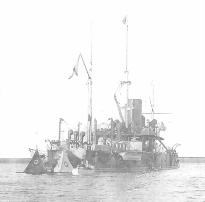 Канонерская лодка «Уралец», одна из вошедших к 1889 году в состав Черноморского флота Как указывалось выше, турки относились к просьбам российского правительства пропустить те или иные военные корабли с недовольством, хотя против прохода миноносцев, подпадавших под определение «легкие суда», формально возразить не могли. Однако, надо полагать, именно появление в Черном море российских миноносцев заставило турок поторопиться с заказом в 1885 году нескольких кораблей подобного типа фирме Шихау, а позднее и заводу «Германия». Впрочем, обоюдное наращивание вооружений не мешало демонстрации дружественных отношений на дипломатическом уровне. Так, после тянувшейся с августа 1884 года переписки по поводу визита Н.И. Казнакова в Константинополь, летом 1886 года вопрос был решен положительно, и по окончании срока командования эскадрой, по пути в Россию, адмирал неделю, с 3 по 9 июля, провел в турецкой столице, где был весьма радушно принят султаном. Ему даже показали артиллерийское учение на броненосном фрегате «Ассари Тевфик», несомненно, стремясь создать иллюзию высокой боеспособности турецкого флота[754]. Внимание Абдул Хамида II к адмиралу, как впоследствии к Н.В. Каульбарсу, вполне укладывается в русло отмечаемой, в частности, М.Ю. Золотухиным тенденции к сближению Порты с Россией, особенно отчетливо проявившейся именно в июле 1886 года[755]. Российская сторона поддерживала эту тенденцию, не забывая, естественно, о подготовке Босфорской операции. Еще в сентябре 1885 года, проезжая через Константинополь, И.А. Шестаков подал полковнику А.П. Протопопову мысль составить план Верхнего Босфора, с указанием мертвых углов обстрела береговых батарей, и распорядился о содействии этим работам станционерного парохода «Тамань». С разрешения управляющего командовавший тогда пароходом капитан 1 ранга Н.В. Власьев приобрел небольшую, водоизмещением 8 т, парусную яхту, позволявшую проводить съемку и промеры, не привлекая внимания турок. Помимо исследования пролива, он выбрал место для минного заграждения между мысами Терапия и Сельви-Бурну. Сменивший его в июне 1886 года капитан 2 ранга А.В. Невражин без промедления продолжил работы и рапортом от 3 ноября представил в ГМШ составленный офицерами станционера при участии А.П. Протопопова «план береговой артиллерийской защиты» в проливе и «план густоты артиллерийского огня». Тогда же был составлен проект укрепления Босфора после его занятия российскими войсками и приведены в соответствие с ним соображения о минном заграждении. Последние предполагали постановку у Терапии 150 мин в три ряда, но не могли считаться окончательными, так как не учитывали трудностей охраны заграждения в указанном месте[756].