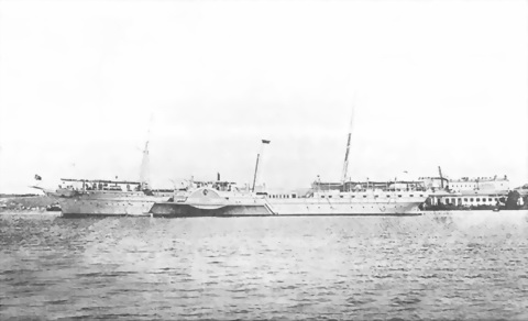 Императорская яхта «Ливадия», авария которой положила конец экспериментам с круглыми судами Признав необходимость, «в стратегическом отношении, иметь на Балтике первоклассный передовой порт, откуда можно было бы во всякое время года выслать в открытое море наш боевой мореходный флот», комиссия по финансовым соображениям отложила его устройство на будущее и ограничилась выбором станции (пункта базирования). Отказавшись от Либавы, Виндавы и Моонзунда, главным образом из-за их мелководности, она постановила: «Балтийский порт приспособить, но без фортификационных укреплений, как зимнюю станцию, со всеми необходимыми портовыми учреждениями, только для временной зимней стоянки совершенно готовых к бою мореходных военных судов, для высылки их по назначению во всякое время года»[196]. Решено было также оборудовать для зимовки нескольких кораблей и в качестве «оперативного базиса в военное время» Свеаборгский порт. Обратившись к крейсерской войне, адмиралы отметили «особенную трудность» успешного ее ведения Россией, «пока не имеющей в отдаленных морях ни колоний, ни портов, ни других безопасных убежищ, столь необходимых для крейсеров в смысле опорных пунктов, на случай весьма возможных исправлений, а также для снабжения их топливом и провизией, и наконец для освежения судовых команд. Кроме того, трудность задачи крейсерской войны для России с неприятелем, обладающим более сильным военным флотом и связанным с другими государствами более обширными интересами морской торговли, будет еще осложняться строгим нейтралитетом дружественных для России держав». Однако указав на эти весьма серьезные, едва ли преодолимые и в будущем препятствия, они все же утверждали: «Принимая во внимание географическое положение двух главных наших морей — Балтийского и Черного, которые кроме своей замкнутости, зависящей или от сил неприятеля, или от усмотрения соседних государств, закрываются еще самой природой, по климатическим условиям, вследствие более или менее продолжительного замерзания наших портов в Балтике, Комиссия единогласно признала, что при таких неблагоприятных … обстоятельствах для действий нашего флота в своих внутренних водах, крейсерская война в открытых морях представляется для России почти единственным и весьма сильным средством для нанесения во время войны существенного вреда торговым интересам неприятеля, обладающего более или менее значительным коммерческим флотом, при чем комиссией было обращено большое внимание на необходимость надлежащей фортификационной защиты Владивостока и обеспечения его хорошими путями сообщения с Сибирью, как единственного пока нашего порта в Тихом океане, который в военное время может служить хотя и отдаленным опорным пунктом для наших крейсеров»[197]. Черноморскому флоту было посвящено заседание 4 декабря. Журнал его весьма лаконичен, несмотря на оживленные прения, развернувшиеся в действительности между оппонентами А.А. Попова и самим адмиралом по поводу строительства броненосцев его конструкции[198]. Однако отредактированный А.А. Пещуровым текст журнала сообщает лишь, что комиссия согласилась с положениями записки от 26 апреля и постановлением Особого совещания 21 августа, указав на непременное условие — содержать в Черном море броненосцы «самого сильного типа». Впервые, хотя и 