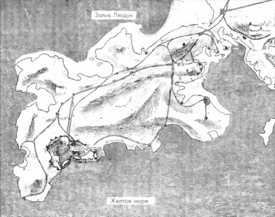 Квантунский полуостров 17 января 1883 года И.А. Шестаков приказал ознакомить с содержанием этого рапорта Министерство иностранных дел, в ответ А.Е.Влангали 27 января сообщил о предписании посланникам в США, Японии и Китае «зорко следить за всем, что будет говориться по данному предмету». Вместе с тем, товарищ министра иностранных дел просил «поручить адмиралам, командующим эскадрою в Тихом океане, не оставлять без внимания Печилийский залив и тщательно изучать его при посредстве наших судов. Залив этот должен быть нам известен как свой, ибо при всяких компликациях с Китаем или с Кореею он будет играть для нас весьма важную роль»[467]. Копию письма А.Е. Влангали И.А. Шестаков 29 января отправил Н.В. Копытову с наставлением: тщательно изучить все, «касающееся Печелийского залива и Корейских и Китайских берегов»[468]. Собственно, такое задание командующий эскадрой уже получил. В рапорте от 10/22 ноября 1882 года им упоминается поступившее перед отъездом из Петербурга указание осмотреть берега Ляодунского залива[469]. Исполнив его во второй половине сентября, Н.В. Копытов донес о новых китайских миноносцах германской постройки, канонерских лодках, укреплениях и фортификационных работах, производившихся в Артур Бэе (Порт-Артуре) под руководством немецкого артиллериста фон Ханнекена. Адмирал отметил что этому порту «имеют в виду придать значение важного морского арсенала»[470]. Рапорт весьма заинтересовал И.А. Шестакова, оставившего на его полях немало замечаний, свидетельствующих о том повышенном внимании, которое управляющий министерством проявлял к Дальнему Востоку. Внимание это объяснялось не только туманными перспективами приложения «избытка народных сил» и возможностью нанести на Тихом океане вред европейским противникам, о чем И.А. Шестаков писал в отзыве на судостроительную программу А.А. Пещурова, но также обозначившейся во время военных тревог 1876–1878 и 1880–1881 годов слабостью обороны дальневосточных окраин России. Забыть о ней было трудно еще и благодаря весьма откровенным публикациям отечественной прессы. Особенно резкую разоблачительную статью поместила 9 января 1882 года газета «Голос», указывавшая на отсутствие во Владивостоке дока, ветхость и малую производительность мастерских порта, недостаток войск.