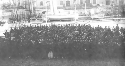 Пароход Добровольного флота «Владивосток» Норвежские промысловики не только заселяли западную часть Кольского полуострова, но с каждым годом все глубже проникали в российские воды и начинали вытеснять оттуда поморов. Поэтому с 1869 года, когда поморы братья Воронины обратились в Министерство внутренних дел с прошением о запрещении норвежцам промысла у российских берегов, туда хлынул поток жалоб, вызвавших мысль об учреждении крейсерства для охраны северных территориальных вод. Сочувствуя ей, Морское министерство готово было выделить одно из своих судов, но не имело средств на его содержание в продолжительном плавании[217]. Поэтому лишь после длительной переписки, в 1881 году Архангельский порт снарядил для патрулирования районов промысла китов шхуну «Полярная Звезда», а в 1882 году — шхуну «Бакан». Обе прежде занимались обеспечением гидрографических работ. Ветхость, малая скорость судов и ограниченные полномочия их командиров обесценили это крейсерство, оказавшееся при таких условиях бесполезным, и до 1893 года оно не возобновлялось. В конце 1870-х годов продолжалось освоение Северного морского пути, главным образом западного его участка, проходившего через Баренцево и Карское моря. Однако производилось оно частным порядком, преимущественно на средства известных купцов М.М. Сидорова и А.М. Сибирякова, субсидировавших плавания английского капитана У. Виггинса на пароходах «Диана» в 1874 году и «Темза» в 1876 году к устью Енисея, капитана Д.И. Шваненберга на шхуне «Утренняя Заря» из Енисея в Петербург в 1877 году. На следующий год У. Виггинс совершил успешное плавание на пароходе «Уоркварт» к устью Оби, а А.М. Сибиряков на собственном пароходе «Оскар Диксон» в 1880 году попытался пройти к устью Енисея, но безуспешно. В 1875 и 1876 годах состоялись две экспедиции шведского ученого Н.А.Э. Норденшельда в Карское море. Правительство России, не принимая активного участия в этом процессе, все же в некоторой степени содействовало изучению Арктики. Так, когда на международных полярных конференциях 1879 года в Гамбурге, 1880 года в Берне и 1881 года в Петербурге по предложению австрийского исследователя, лейтенанта К. Вейпрехта была подготовлена программа Международного полярного года, предполагавшая устройство сети станций. Австро-Венгрия, Голландия и Россия взяли на себя организацию экспедиций на Новую Землю, полуостров Таймыр и в устье реки Лены. Уже в 1881 году состоялась экспедиция полковника корпуса флотских штурманов С.А. Моисеева к устью Оби, а весной 1882 года была снаряжена экспедиция лейтенанта К.П.Андреева на Новую Землю, отправившаяся в путь 22 мая. Касаясь развития коммерческого пароходства нельзя обойти вопрос о том, в какой мере судоходные предприятия могли служить резервом личного и корабельного состава военно-морскому флоту. До известной степени ответом на него служат повторявшиеся на протяжении десятилетий сетования по поводу крайнего недостатка квалифицированных кадров. И в начале ХХ века писавшие на данную тему авторы отмечали: «Команды на коммерческие суда набираются из людей, приходящих на заработки со всех концов империи; люди эти — случайные базарные рабочие, совершенно не знакомые ни с морем, ни с морскою службой и лишенные всякого понятия о какой бы то ни было дисциплине». В подавляющем большинстве они являлись крестьянами-о